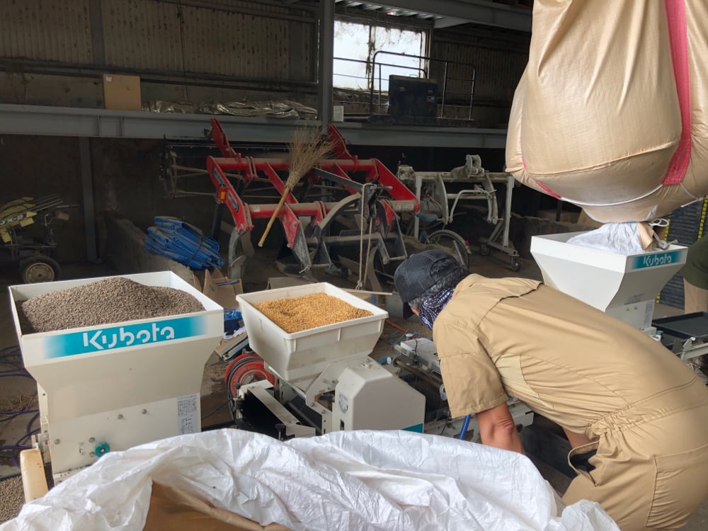 この、籾がタネになるんですが、籾摺り(もみすり)して籾殻(もみがら)を取ったら玄米になり、精米して糠(ぬか)部分をとったら白米になります。