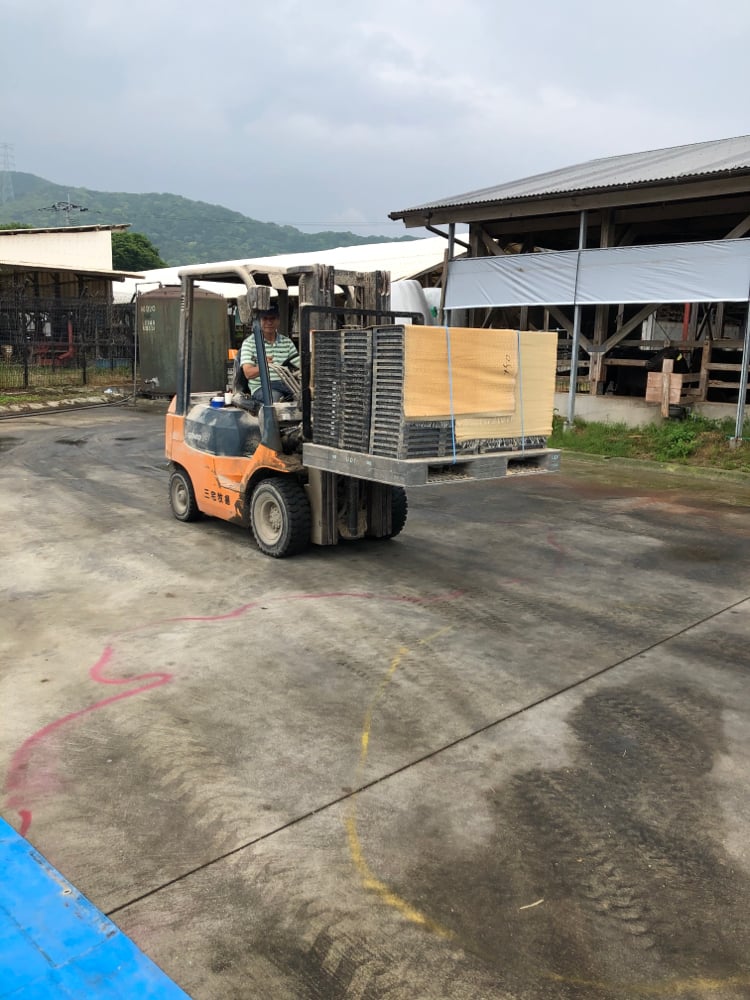 積み上げた苗箱を運ぶ係の父