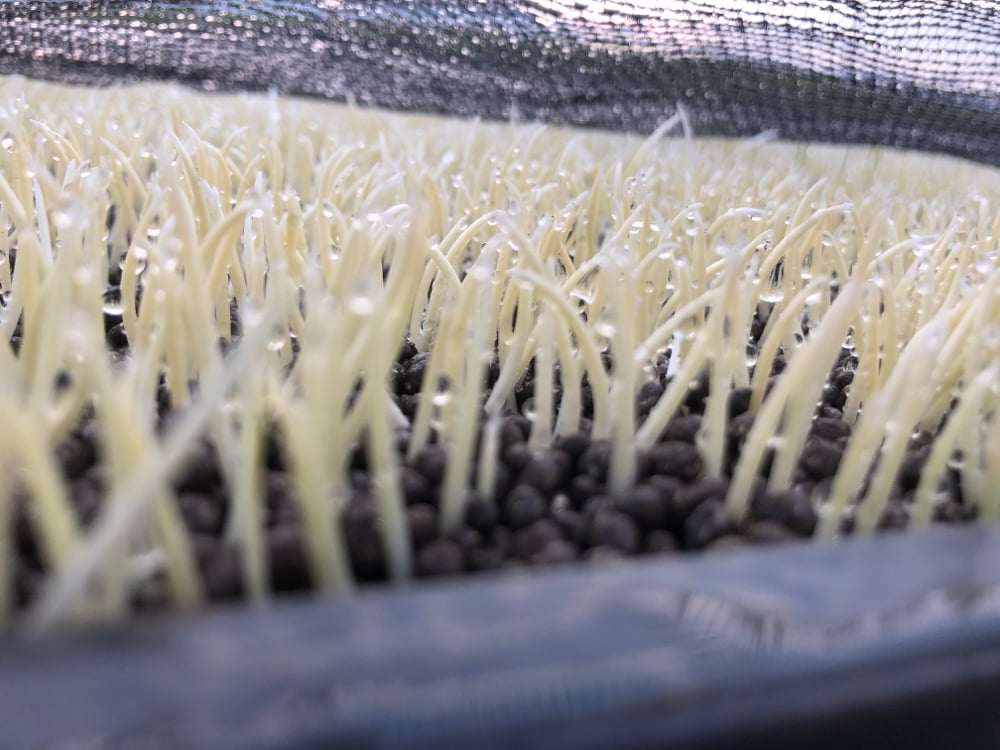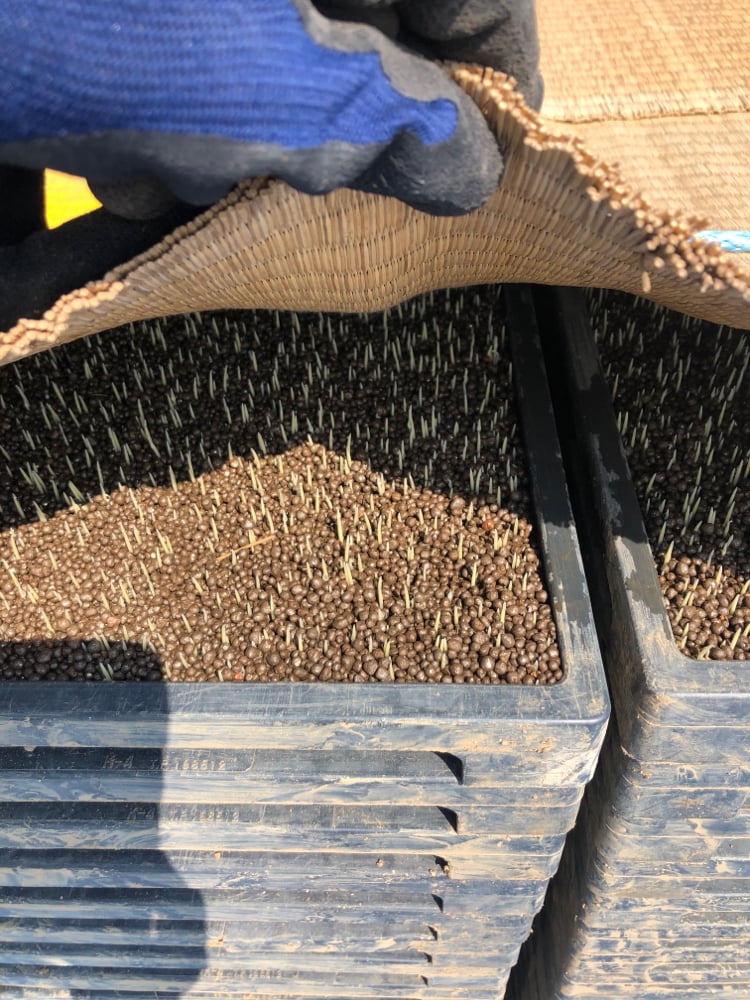 急に直射日光に当たるのは赤ちゃん芽には辛いので、黒のスクリーンシートや寒冷紗を掛け布団のようにかけてあげます