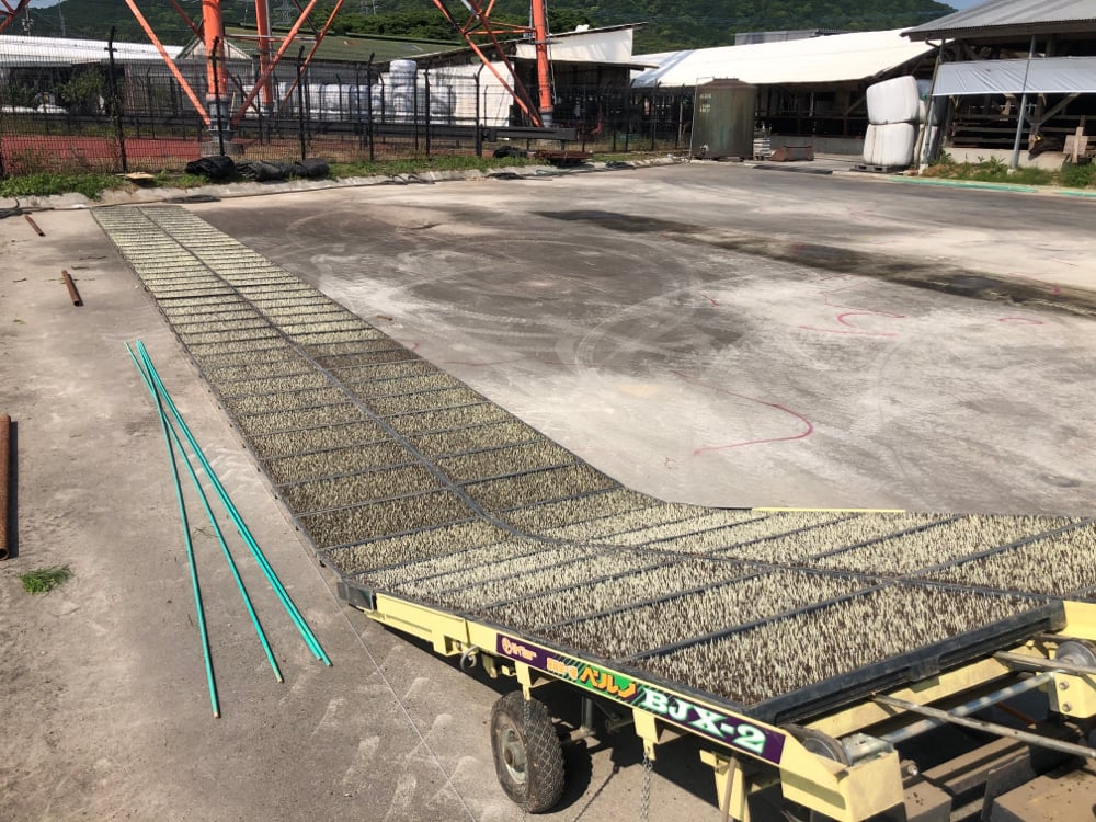 一枚づつ、並べていく作業はスクワットのようで腰に効くトレーニングのような過酷さがあるのですが、数年前からとても便利な助っ人が入社しました。