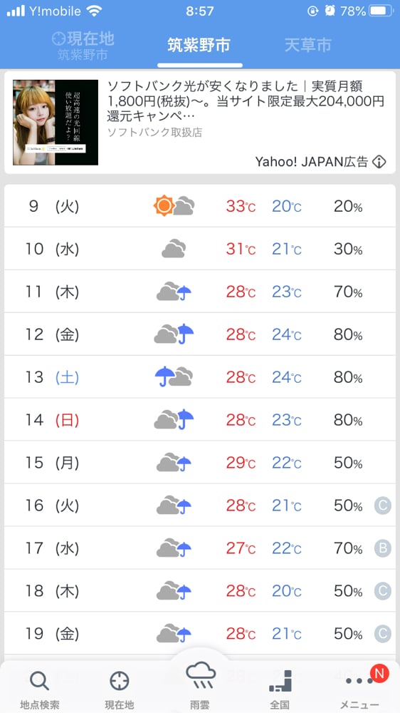 週間天気予報によると、来週中頃から雨予報☂️