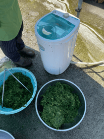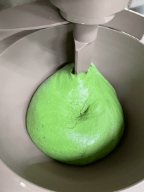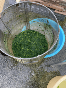 こうして下ごしらえしたよもぎを餅につきこむとこんなにキレイな色になりました❣️