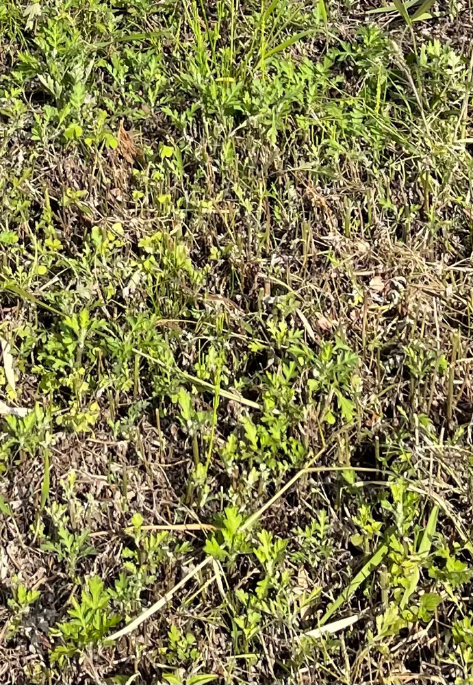 栽培しているよもぎ畑では、よもぎの葉を摘んだ後、地表近くで切り戻して次の新芽が伸びるようにしています