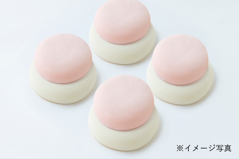 お子様にも安心な天然色素の紅麹色素を使用しており、そのため発色がやさしい色になっています。天然色素のため、直射日光に当てると退色が進み、紅の色が薄くなる傾向がありますお餅できるだけ日陰に保管してください。