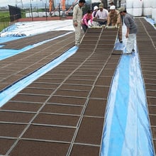 お米の種をまく土のベット。高さを揃えて丁寧につくります。
